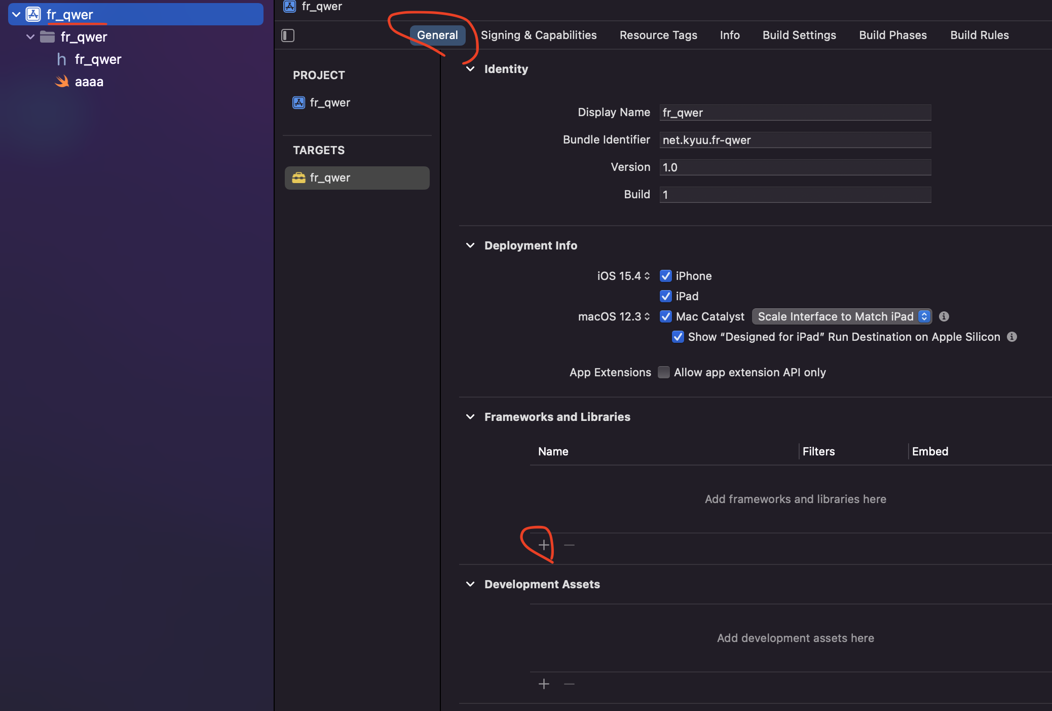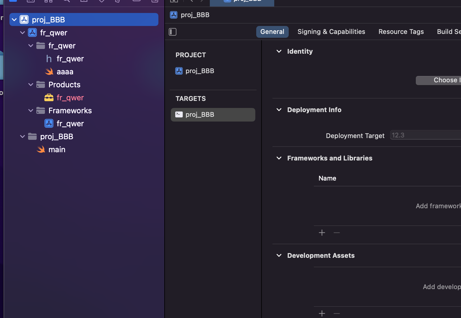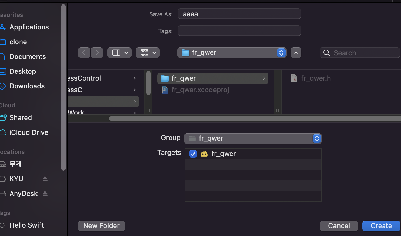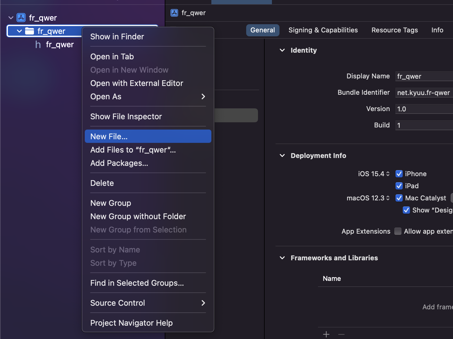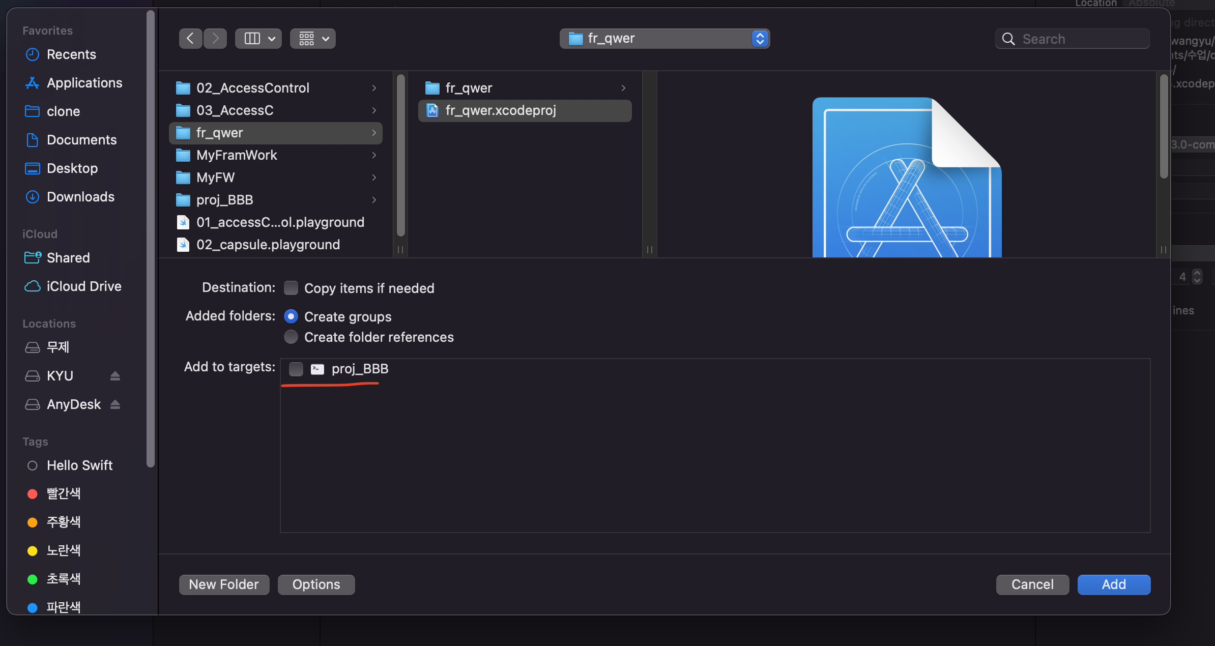 프레임워크의 Xcodeproj -> fr-qwer 파일선택