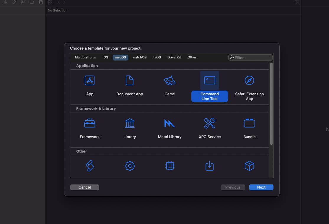 1. Xcode 실행 -> file -> new -> Project 에서 macOS -> Framework 선택해주세요