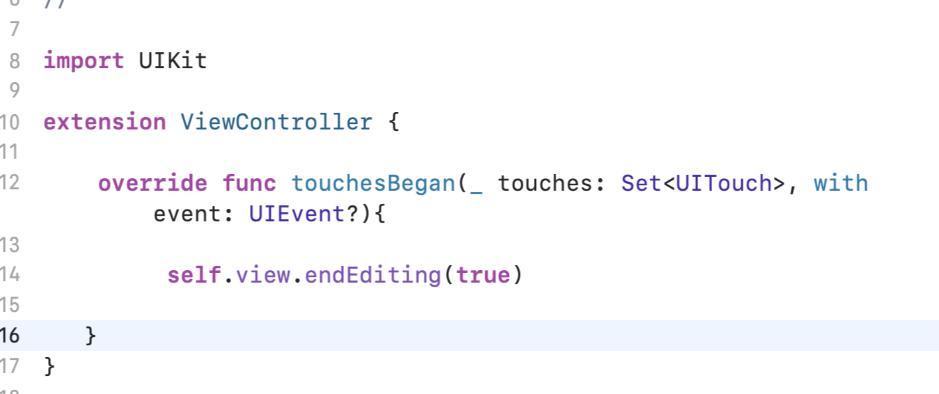 아무 뷰컨트롤러에 적용하시면됩니다. 이 코드를 저는 따로 스위프트 파일에 추가해서 만들어놓고 사용합니다!
