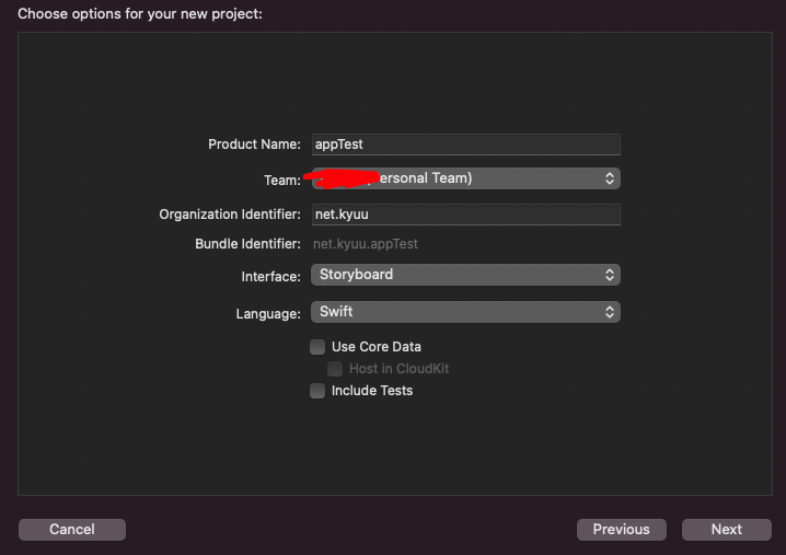 Unit Tests, Include UI Tests : 앱의 동작을 자동으로 설정할지 선택합니다.