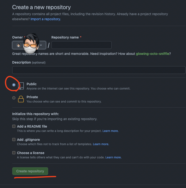 동그라미 밑에 Private 는 유료버전이라 위에 Public 체크 해주세요!