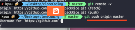$ git push origin master // master branch에 있는 파일을 가져온다.